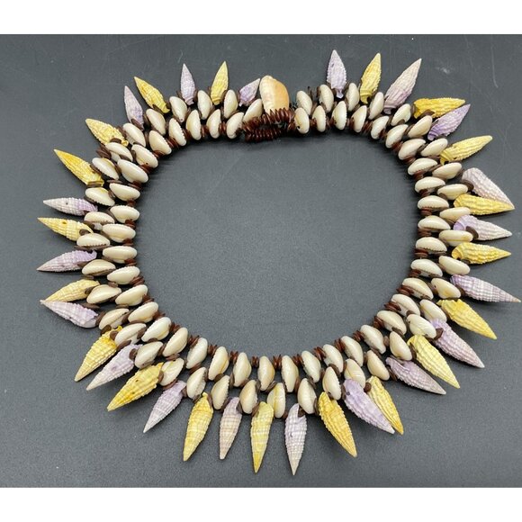 Shell Necklace With Cowrie & Conical Shells 17" Diameter Coastal Beach Surfer