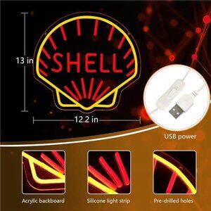 🧿【Special Designn] Shell oil logo neon sign specially designed for garage man cave or bar. Decorate your walls,a dd character to your space.