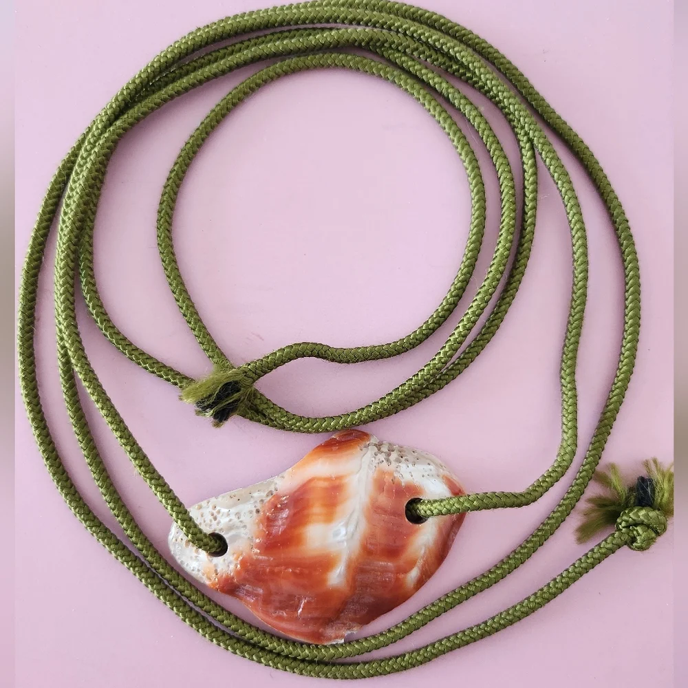 Shell Pendant Green string, but you can use your own string, cord, stap, etc See pictures for details Check out my other listings Reasonable offers will be considered