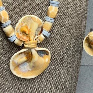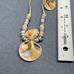 Shell Pendant Necklace Earrings 24 In Ceramic Beads Light Blue Beige Retro Boho