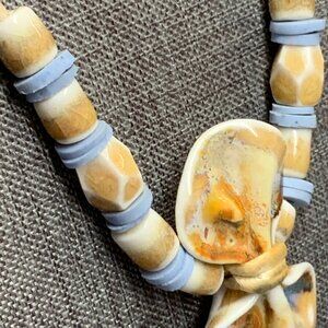 Statement, Retro, Vintage, Beach, Classic, Bohemian, Boho, Organic, Stone, Fashion, Gift, Beaded, Chunky, Whimsical, Artisan, Handmade, Light Blue, Blue, Beige, Hippie, Festival, Chic, Bold, 80s, 90s, Y2K, Asian