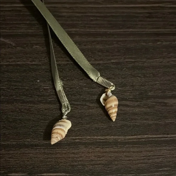 Elegant bookmark with shell pendants on a ribbon. Perfect for beach and book lovers.