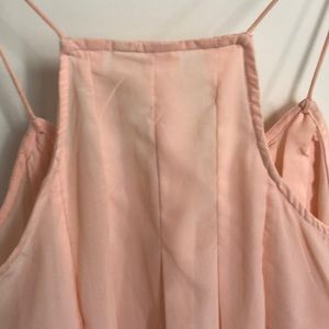Shell pink pleated blouse with spaghetti straps and flowy hemline