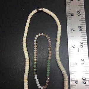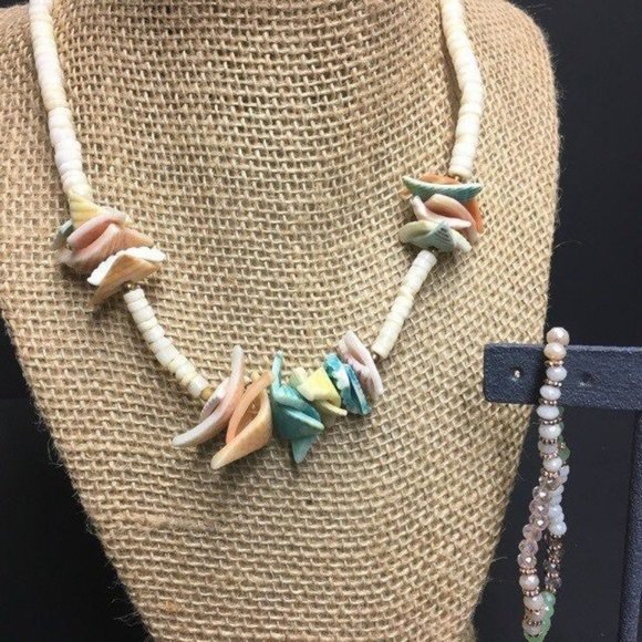 Shell Puka Necklace Bracelet Set White Pink Blue Yellow Salmon Gold Stretch BoHo