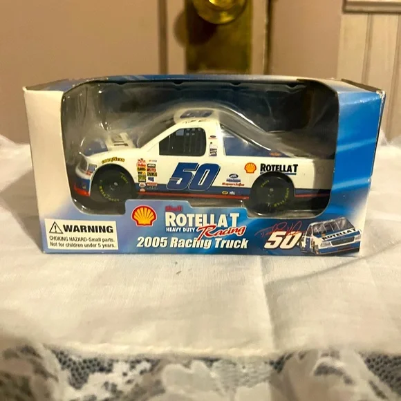 New still in packaging. Shell Rotella 2005 racing truck. 1.43 scale. For ages five and up. Stored in a box.