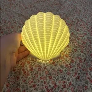 Charming shell shaped night light. Emits a warm yellow glow. Perfect for cozy ambiance.