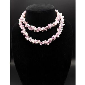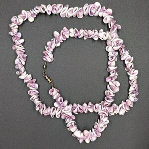 Purple and White Shell Statement Necklace - Periwinkle Lily Shell Beads - 32" Long Strand - Vintage 1970s