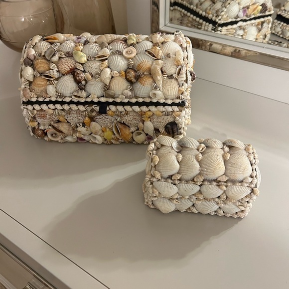 One larger and one small shell trinket box just like the ones you find in beach side souvenir shops.