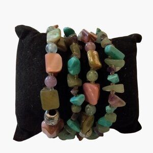 Shell Turquoise Bead Wrap Bracelet Beaded Adjustable Colorful Beachy Coastal