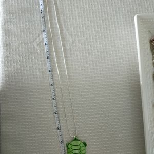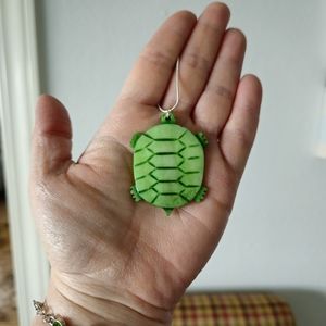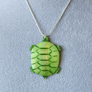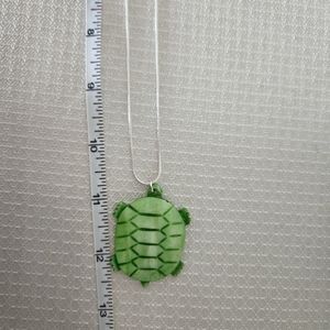 Green Shell Turtle etched with details Sterling Silver Snake Chain BNWOT Never Worn