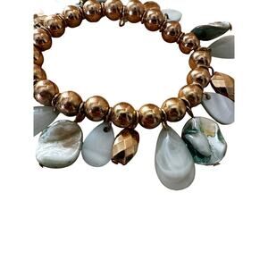 Shell and Sea Glass Gold Bead Stretch Bracelet