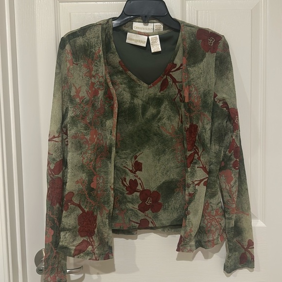 Floral shell and button up sweater set. Fabric is mesh. Great condition!