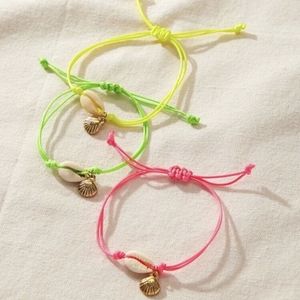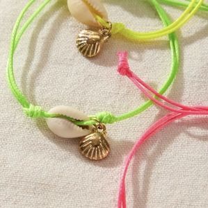 Shell and gold charm neon adjustable bracelet
