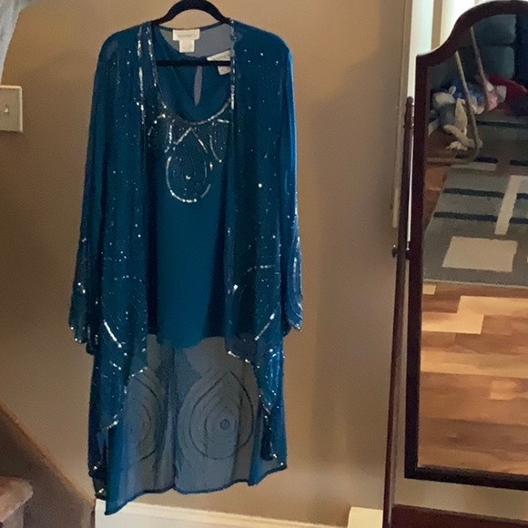 Tank with sheer overlay. Both have exquisite beading.