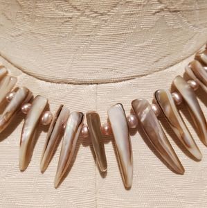 Shell and pink pearl choker necklace