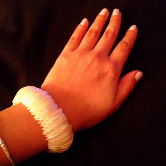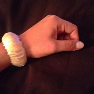 Pearl white shell bracelet, very pretty! Goes with anything! Wear it with a pretty summer dress or with any nice casual outfit, it even looks good with business wear as well!
