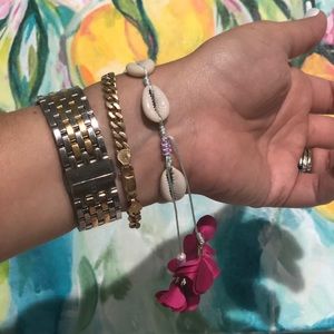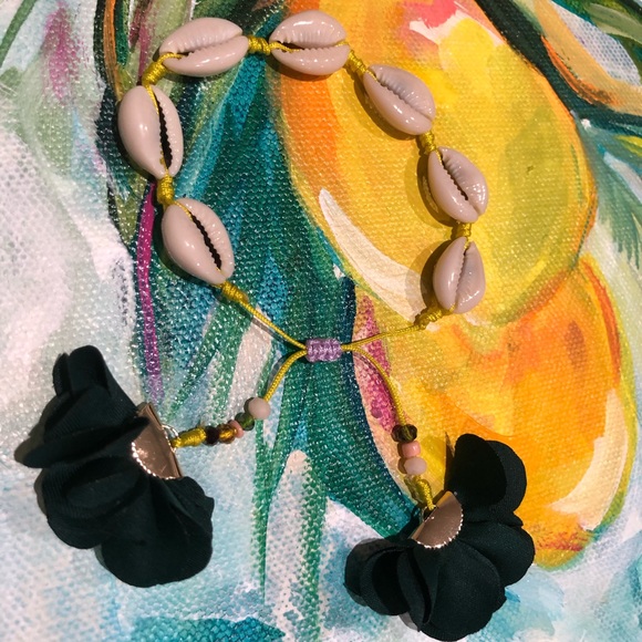 hand made by me. The flower is dark green, lilac knot and hot yellow strip