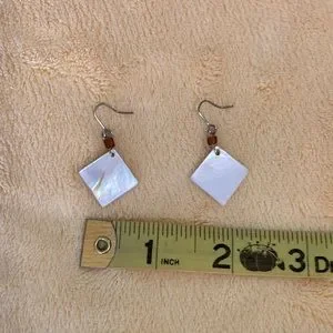 Super cute and classic shell dangle earrings on French hooks. Approximately 1.5" x 0.75".