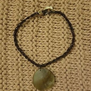 Beautiful circle shell w clasp and braided leather cord, by artist in LA.