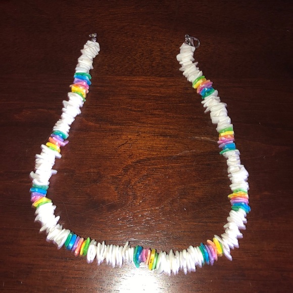 bohemian shell necklace/choker rainbow accents
