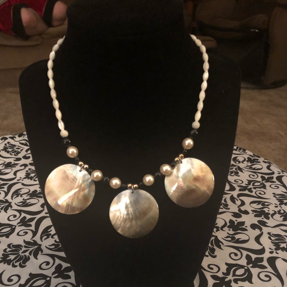 Beautiful beaded chain with 3 capiz shell pendants. Never worn! 18.5” long