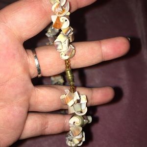 Bought on a trip in the Bahamas. Multi-she’ll shapes and size of smooth shell.