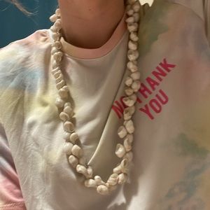 Shell necklace it is home made and very sturdy it has lasted a long time. I can go lower on the price