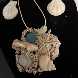 Beautiful hand crafted shell design necklace. Earrings come with it. A sidewalk stopper!!!