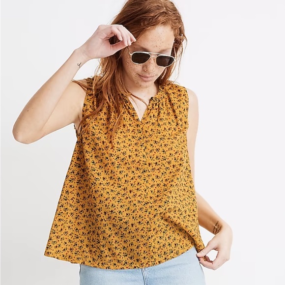 Madewell shirred shell tank in Calico Shirred crewneck and swingy shape Regular fit Cotton SZ large Yellow