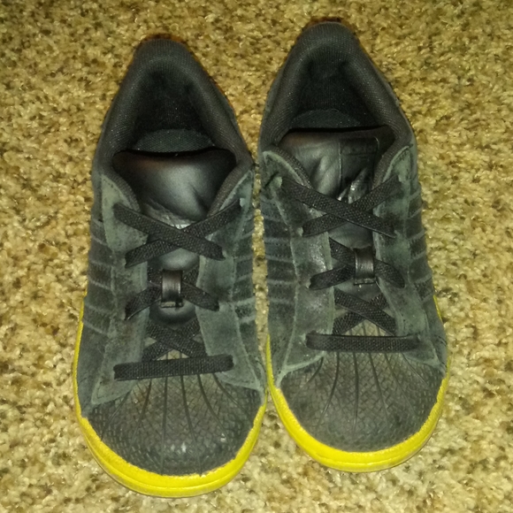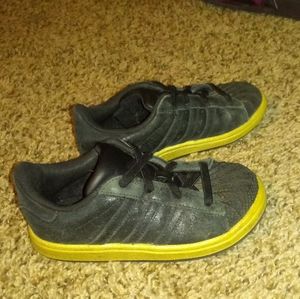 Little kids shell top Adidas. Black with gold sole. Size 10c
