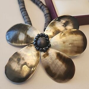 Shell Flower Beaded Necklace Some tarnish at clasp Inventory Location Box 24