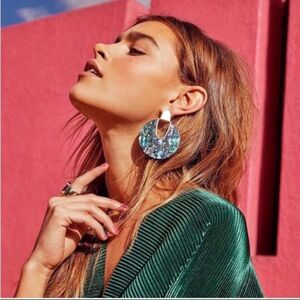 Shell Gold Open Circle Acetate Drop Earrings NWT