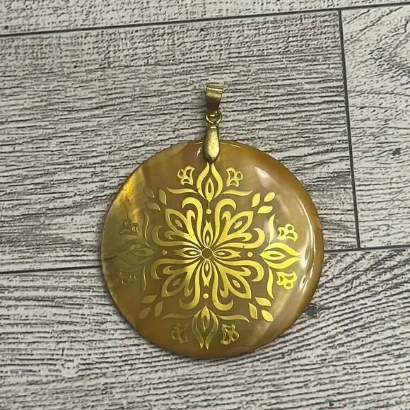 Shell Round Cut Pendant. Measures 2” diameter. Excellent preloved condition.