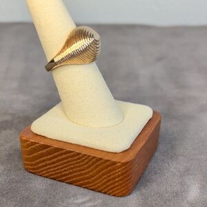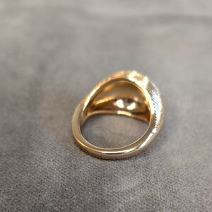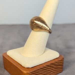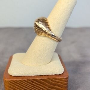 Gold-tone ring with a shell-texture dome. Eye-catching shine. Perfect for everyday wear or special occasions.