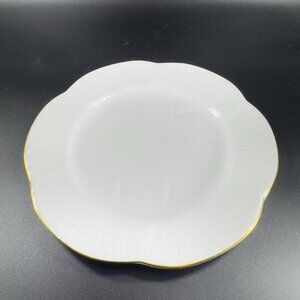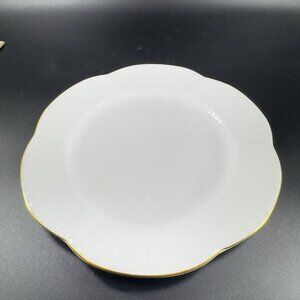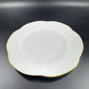 Shelley Dainty White Dish Plate Set Flower Shaped Gold Trim Set 4 Bone China Set