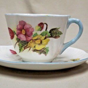 Shelley Fine Bone China England Dainty Begonia Footed Tea Cup and Saucer