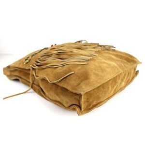 Shelley Wenum TAN BROWN GENUINE SUEDE FLORAL APPLIQUE FLAP SHOULDER BAG HANDBAG PURSE