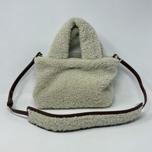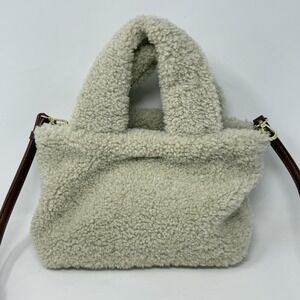 Shelli Segal by Laundry Sherpa Tote Bag Purse Cream Color Teddy Bear
