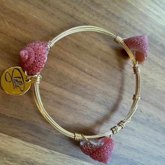 Shellie, Red, Handmade, Wire, Shell Bangle Bracelet