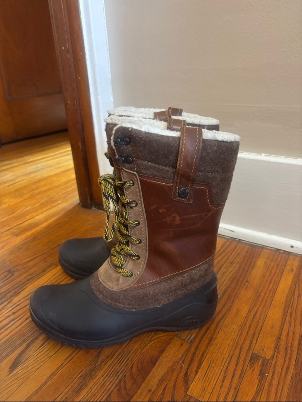 The North Face's Shellista III Mid Boot is the cute way to maintain a warm and dry environment for your foot this winter. Its TPR shell seals out snow and slush while PrimaLoft Eco synthetic insulation traps in heat even if you do manage to get it out. The leather upper is durable and waterproof in addition to providing a sleek look, and underfoot the Shelista III features a TNF WInterGrip outsole to ensure you have the confidence only traction can provide. Minor wear