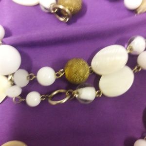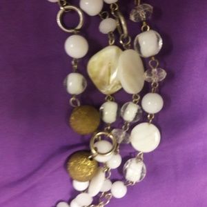 Beautiful! 4 strands of shells, glass beads, metal rings, round stones & more! A few larger gold beads adds dimensions and pop!