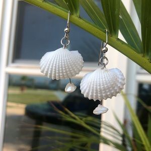 These shell earrings are with river pearls. The first image are made with pearls of petals. Their hooks are in stainless steel and all shells collected from our beaches, Rincón Puerto Rico.