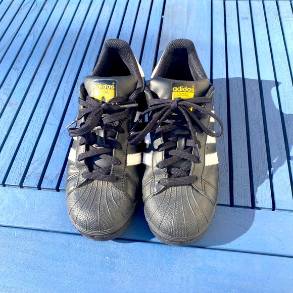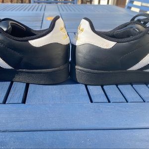 Black and white classic shell toe adidas. Very comfortable, little creasing on the front. Slight scuffing in inside heel, barely noticeable when on or walking. Open to negotiations