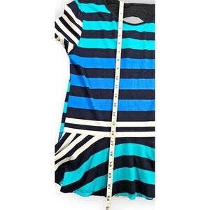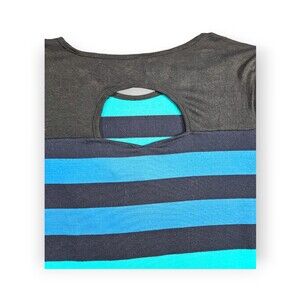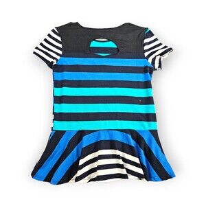 Shelly Blouse Size Medium Blue Peplum Colorblock Striped Keyhole Back Stretchy