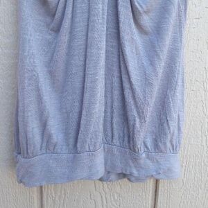 Tan taupe Boho lace racerback tank with flower embroidered appliques accenting scoop neck lightweight gathered material and elastic waistband by Shelly.