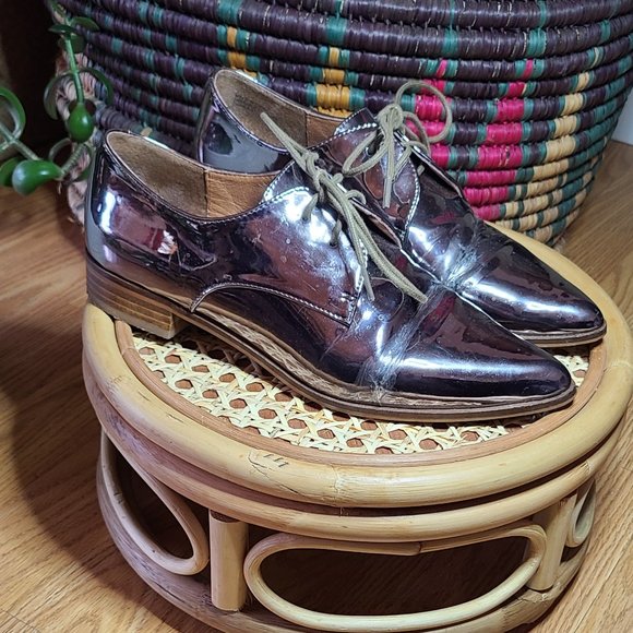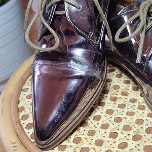 Silver metallic pointy toe loafer. These loafers have some wear and minor cracking at the toe crease do to the material of the shoe (reflected in price). These will definitely elevate your outfit!