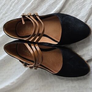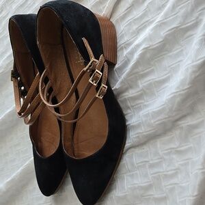 Step out in style with these elegant black women's shoes featuring chic tan accents. Perfect for any occasion.