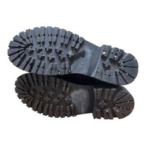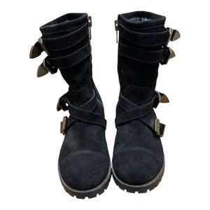 Shellys London Sz 7 Black Leather Suede Biker Moto Combat Boots Buckle Shoes