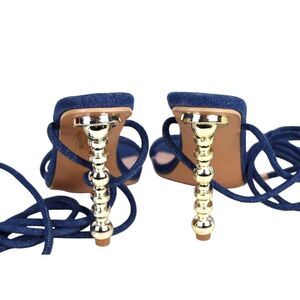 Sheln BLUE DENIM HIGH HEEL OPEN TOE SLINGBACKS GLADIATOR SANDALS SHOES Sz 39