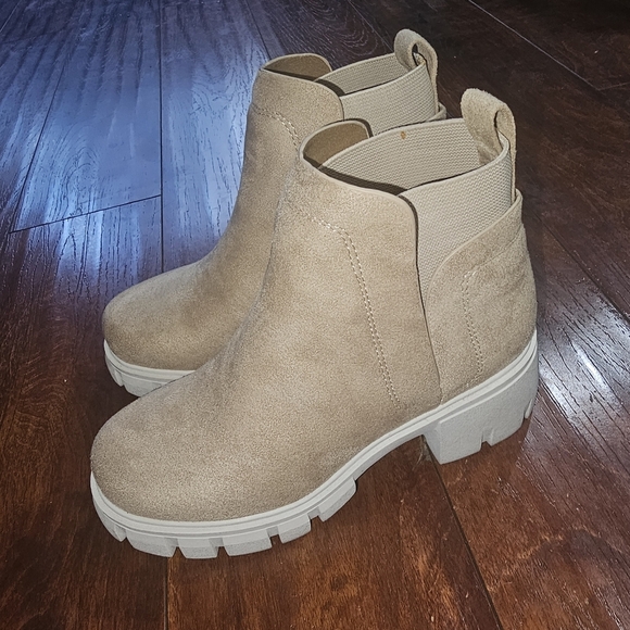 Sheln Faux Suede Ankle Boots with Chunky Heel and Lug Sole-Taupe, Size 5.5